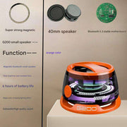 Orange Portable Mini Bluetooth Speaker with Magnetic Base, High-Quality Bass and Surround Sound, Colorful Ambient Lighting, USB Rechargeable, 6-Hour Battery Life