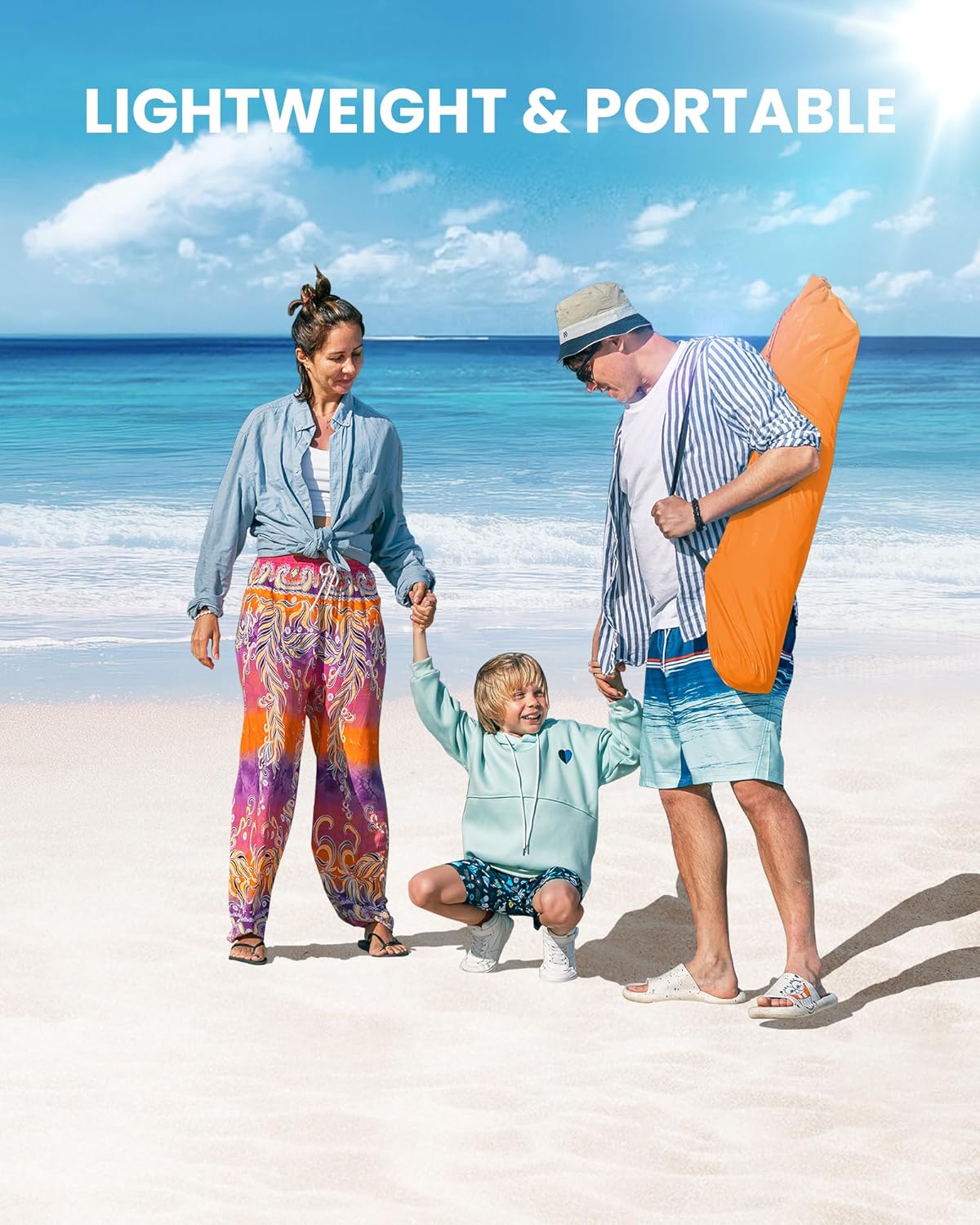 The beach tent is constructed from premium 210T sun-proof material coated with polyester, providing effective heat blocking and offering 98.5% protection against harmful UV rays. Furthermore, with a robust 4000 mm PU coating, the tent is completely weatherproof, ensuring you remain dry even during rain or light snow.