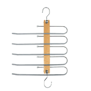 Organise your wardrobe in style with these natural wood, handcrafted hangers. Smooth enough to avoid splinters yet with enough grip to keep your pants from slipping off, these hangers give your wardrobe a uniform, elegant look. With their streamlined, uber-modern lines, they give your wardrobe's interior a designer look. With their rotating hooks, they're easy to hang. Each hanger accommodates five pairs of pants, so you can store your whole pants collection with only a few hangers. Save space and give your wardrobe a makeover. Order your hangers today!