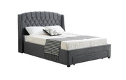 Introducing the Paris Tall Tufted Velvet Dark Grey Bed with Storage Drawer, a stunning and practical addition to your bedroom. This bed combines elegance, comfort, and functionality, providing both style and ample storage space for your belongings. Available in both Queen (153cm wide x 203cm long x 130cm head height) and King (183cm wide x 203cm long x 130cm head height) sizes, this bed offers versatility and options to suit your needs and bedroom size. The dark grey velvet tufted upholstery adds a touch of sophistication and modernity to your space, creating a sleek and stylish ambiance. With its storage drawer and tall headboard, the Paris Bed is the perfect addition to your bedroom, requiring assembly for a truly luxurious sleeping experience.