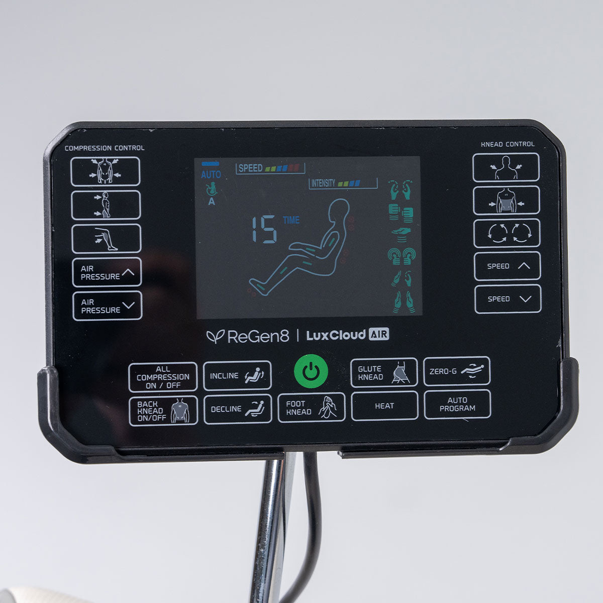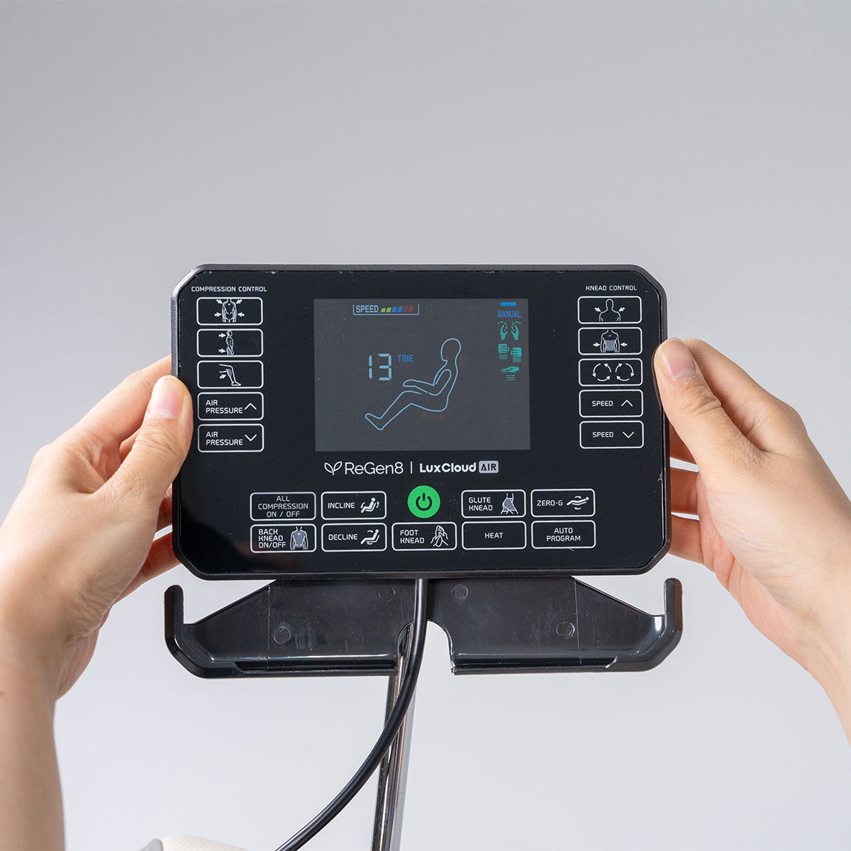 Give yourself a true moment of relaxation and rejuvenation with the LuxCloud Air. Designed with Zero Gravity functionality, it reclines to distribute your body weight evenly, relieving tension and pressure from your muscles and joints. Experience the soothing warmth of the built-in heating elements, melting away stress and promoting circulation for ultimate relaxation. With automatic programs and customisable intensity levels, every session is precisely designed to maximise your relaxation. Treat yourself to a premium experience of relaxation and wellness with the LuxCloud Air.
