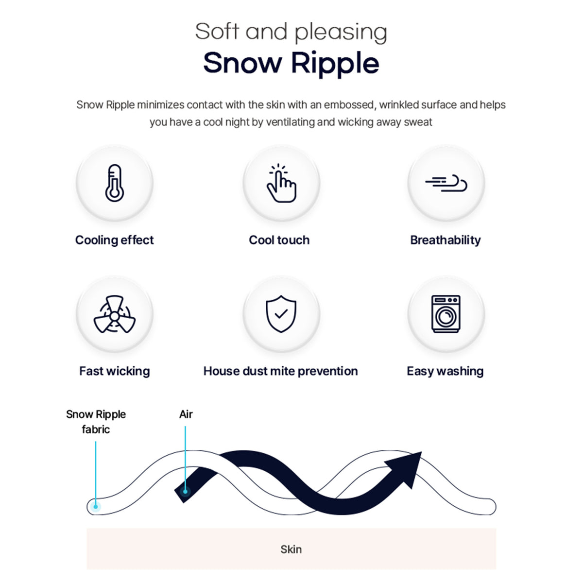 Snow ripple fabric: SAESOM's Flua Snow Comforter set is meticulously crafted with snow ripple fabric, an exquisite seersucker variation. This unique fabric employs finer yarn, delivering an exceptionally soft and gentle touch that feels like a dream against your skin.