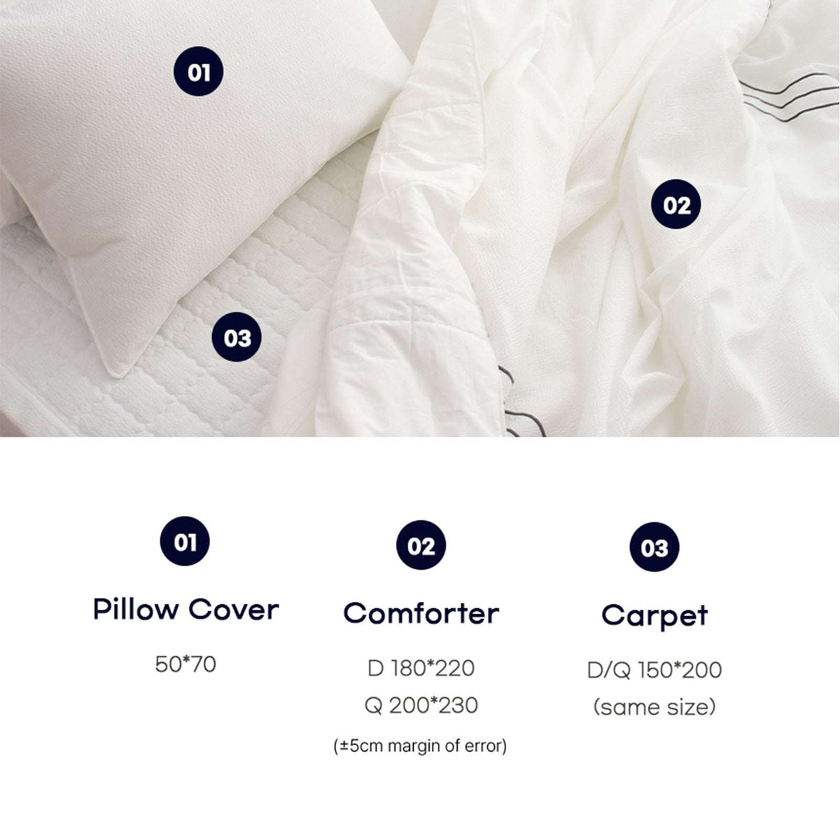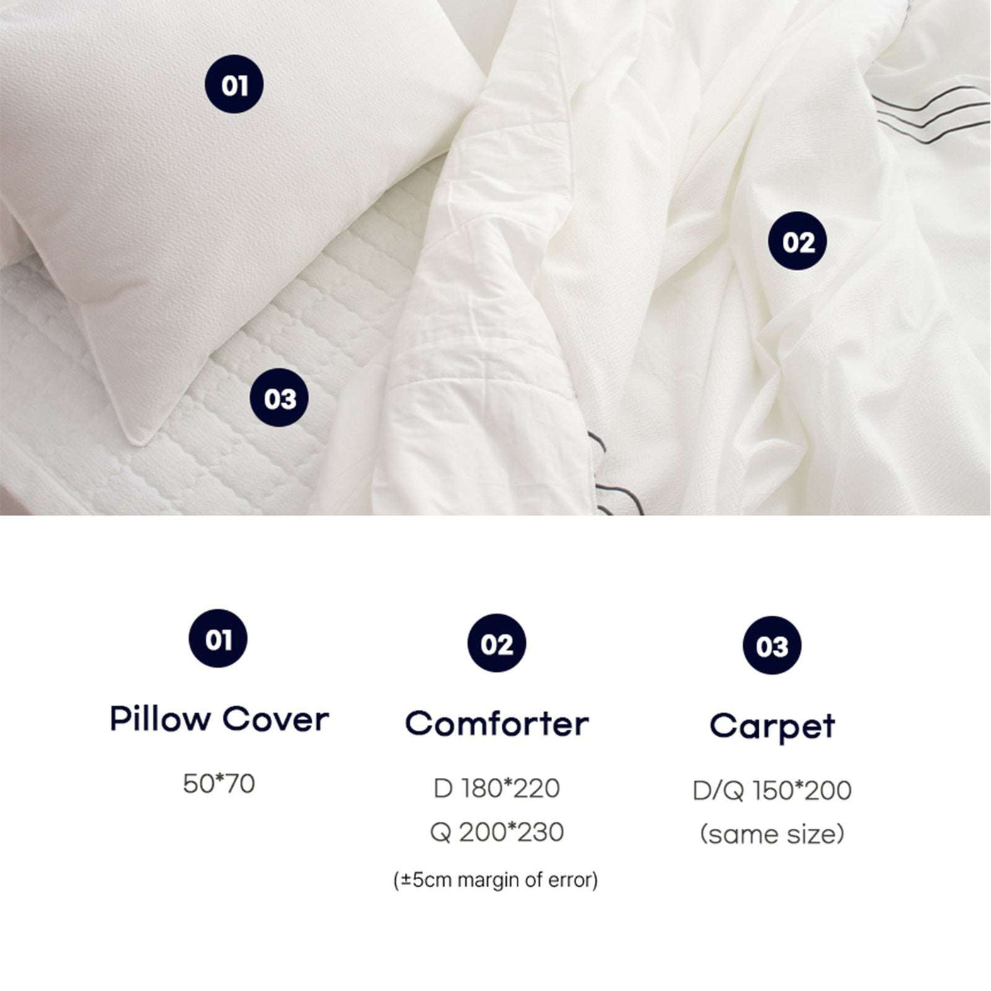 SAESOM proudly presents the Flua Snow Comforter, a comprehensive set featuring a comforter, pad, and 2 pillowcases. Our creations are meticulously crafted in Korea for a cool, skin-friendly, and breathable sleep experience, ideal for summer nights. Here's why it stands out:
