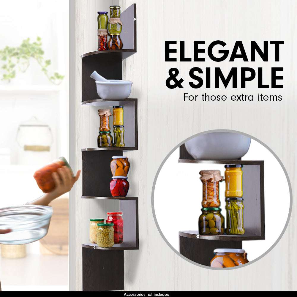Sarantino 5 Tier Corner Wall Shelf Display Shelves Dvd Book Storage Rack Floating Mounted - Dark Brown