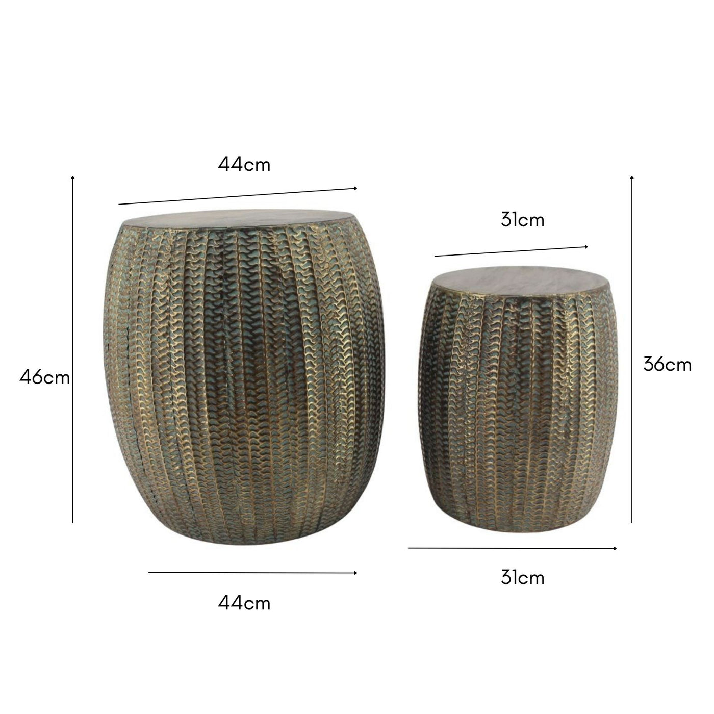 Set 2 Nested Lustre Barrel Side Table / Stools 46cm