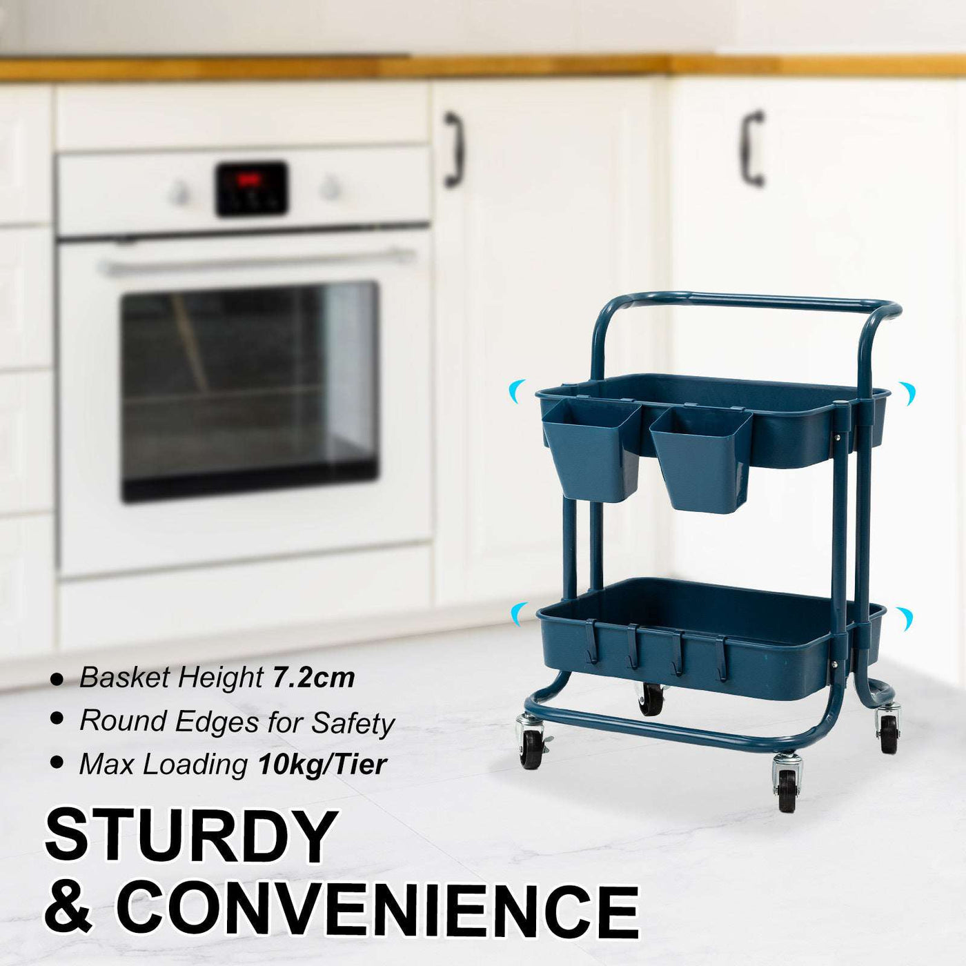 Kandoka Trolley Cart Storage Utility Rack Organiser Swivel Kitchen 2 Tier - Blue