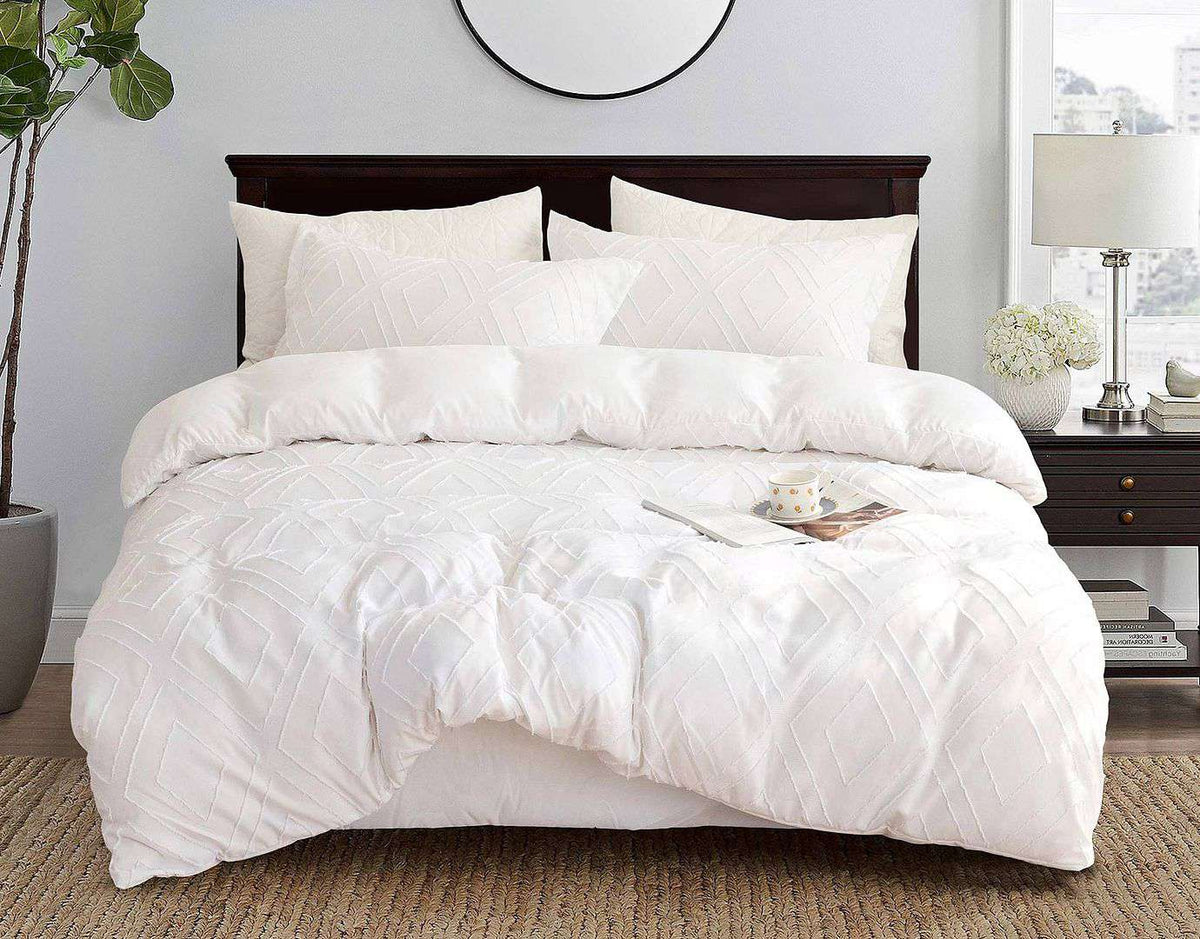 Tufted Diamond Jacquard King Size White Duvet Quilt Cover Set (Online Order Only)