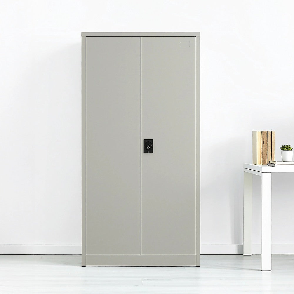 This two-door metal wardrobe made of cold-rolled steel of 0.6mm thickness, painted with special electrostatic paint for maximum resistance to moisture and corrosion.