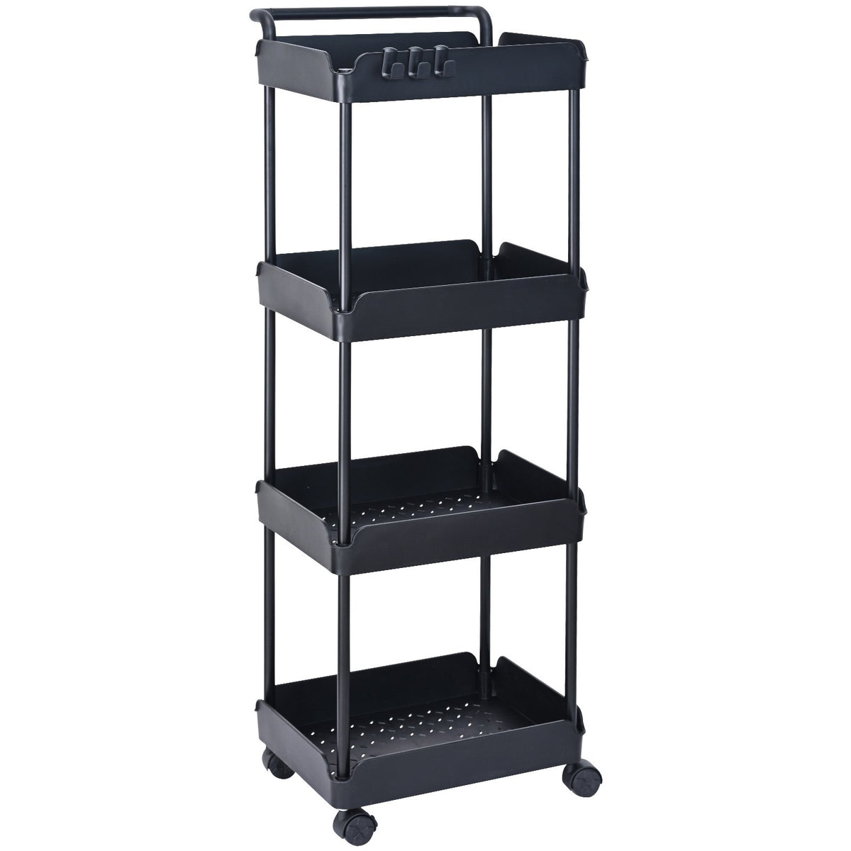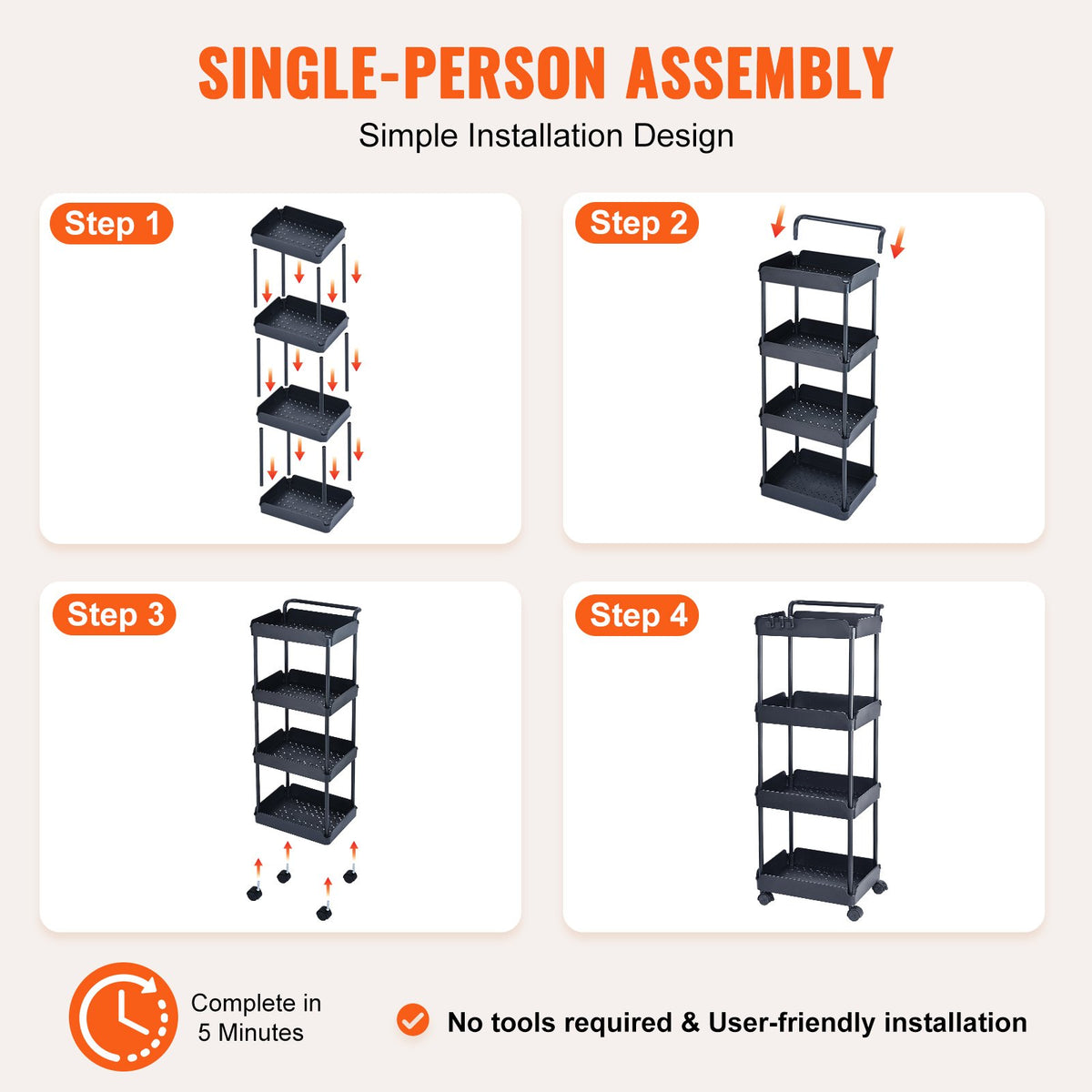 VEVOR 4-Tier Kitchen Rolling Cart Basket Utility Cart on Wheel with Handle Black (Online Order Only)
