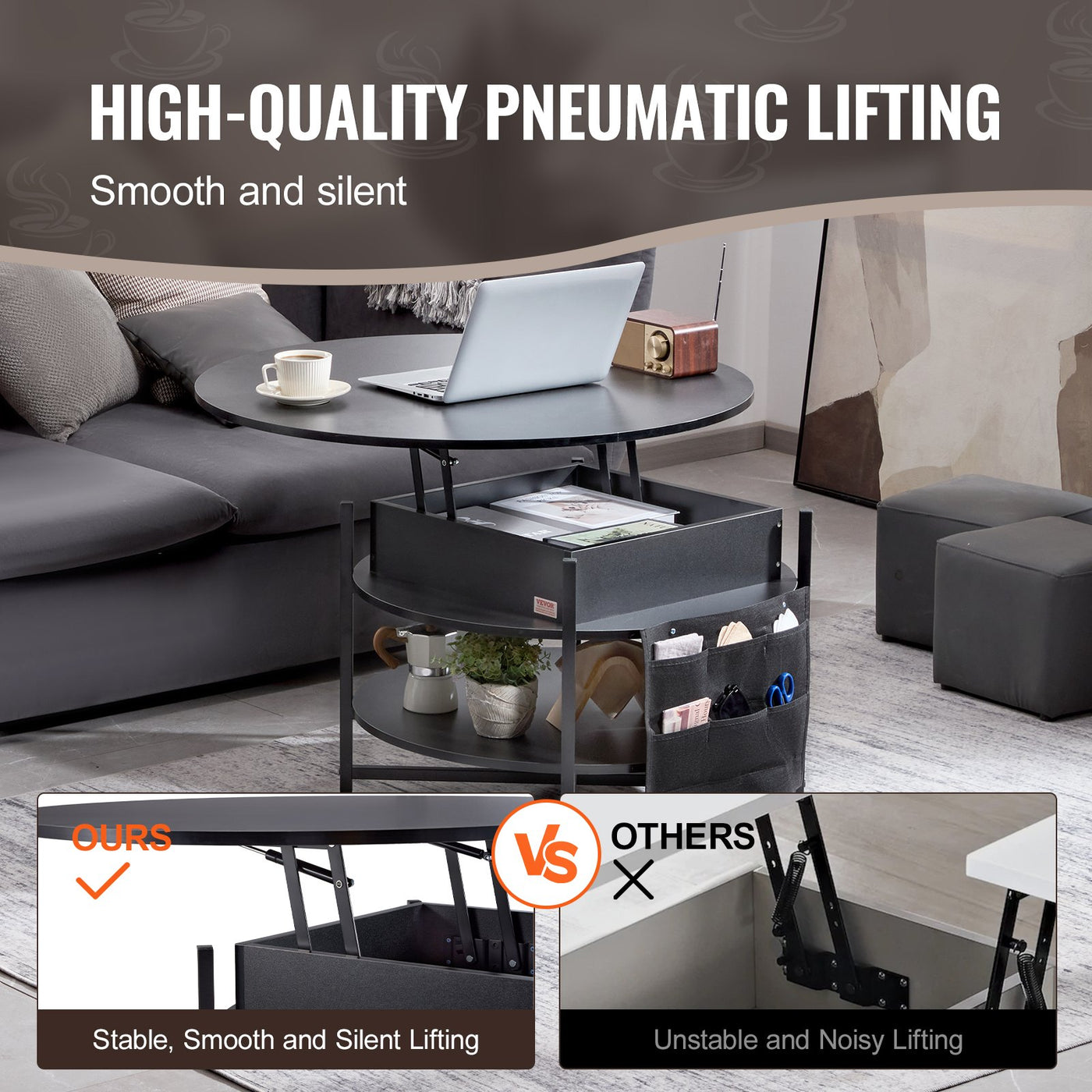 VEVOR Lift Top Coffee Table 35.3" Round Coffee Table for Living Room Black (Online Order Only)
