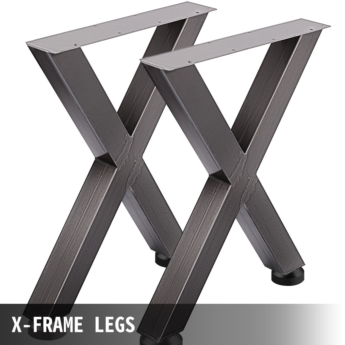 VEVOR Set of 2 Steel Table Legs, 28'Height 24'Wide Dining Table Legs, Heavy Duty 3.1" Square Box Section X Frame Table Legs, 28x24x3.1 Inch Original Color Industrial Country Style Metal Dining Legs