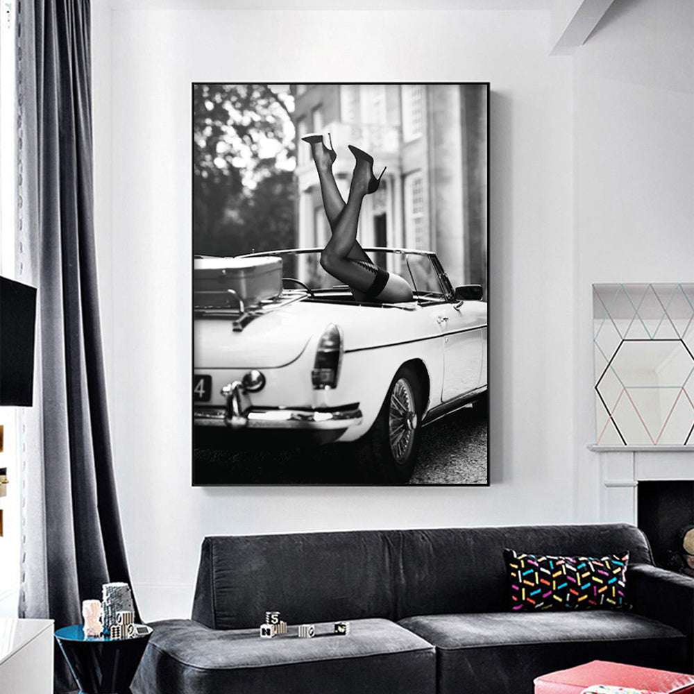 Wall Art 100cmx150cm High Heels in Classic Car Black Frame Canvas index