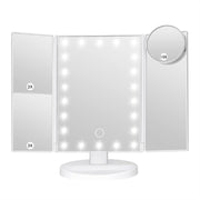 White LED Lighted Tri-Fold Vanity Mirror with 2X/3X/10X Magnification