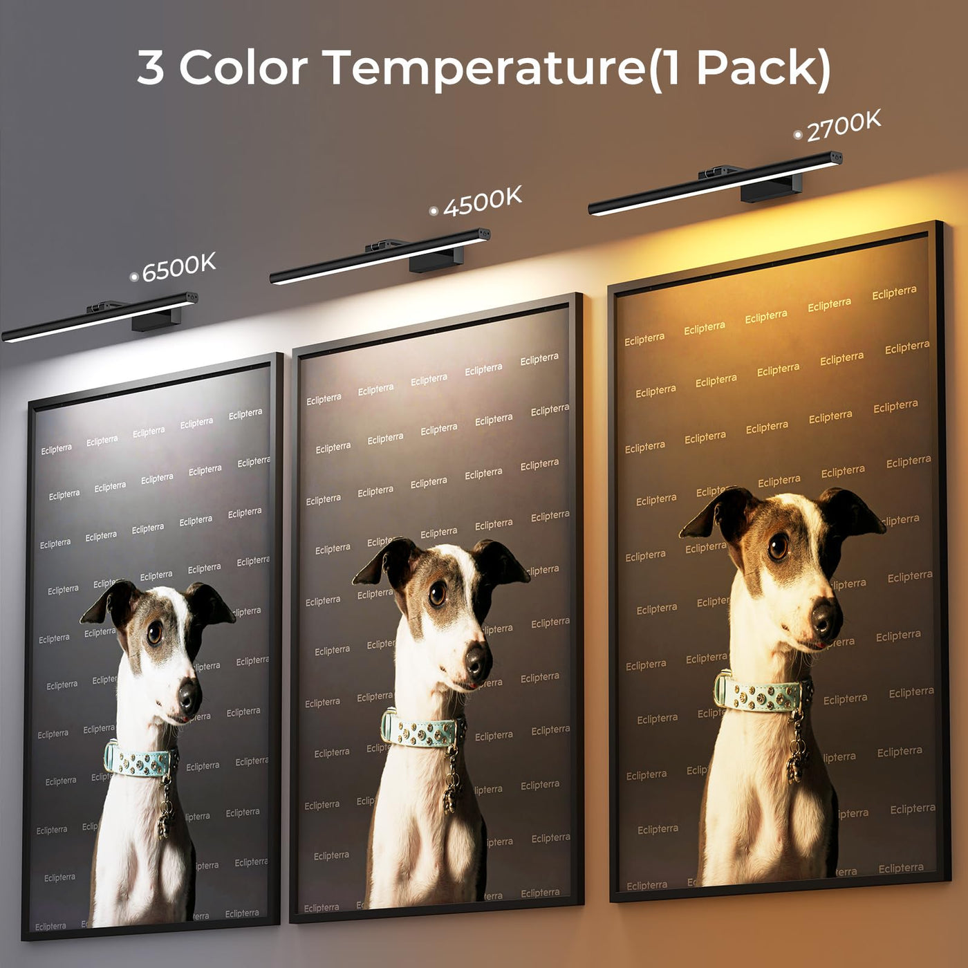 Wireless Picture Lights for Wall, Battery Operated Wall Light for Painting Rechargeable CCT Rotatable Art Gallery Light with Remote Dimmable Timer for Artwork Frame Display Dartboard (Black, 16inch)