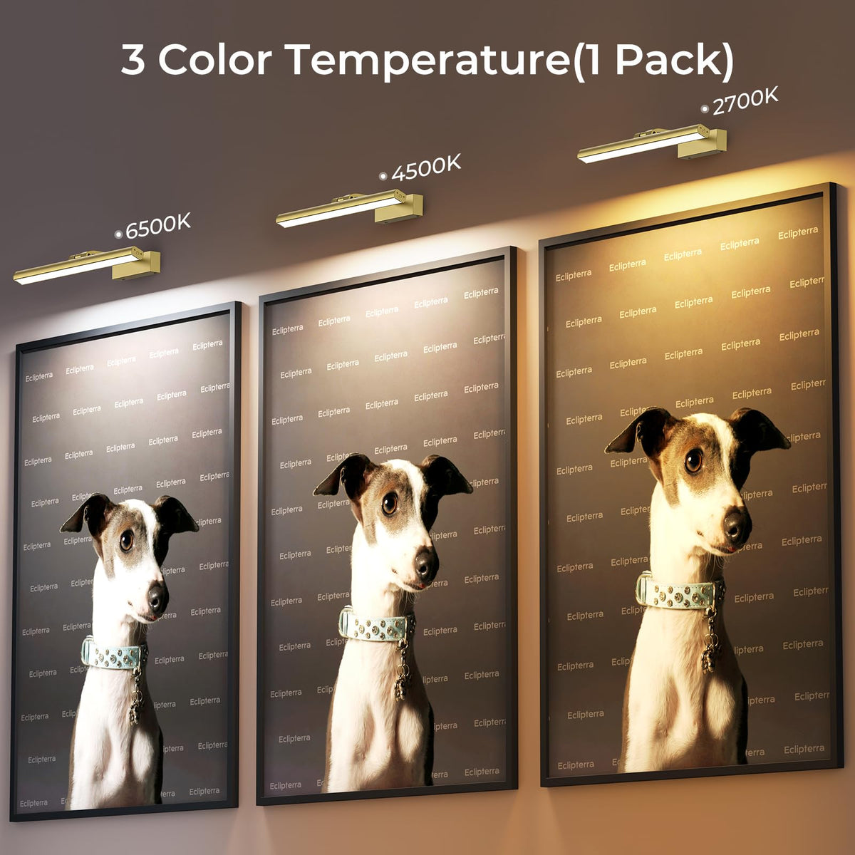 Wireless Picture Lights for Wall, Battery Operated Wall Light for Painting Rechargeable CCT Rotatable Art Gallery Light with Remote Dimmable Timer for Artwork Frame Display Dartboard (Gold, 16inch)